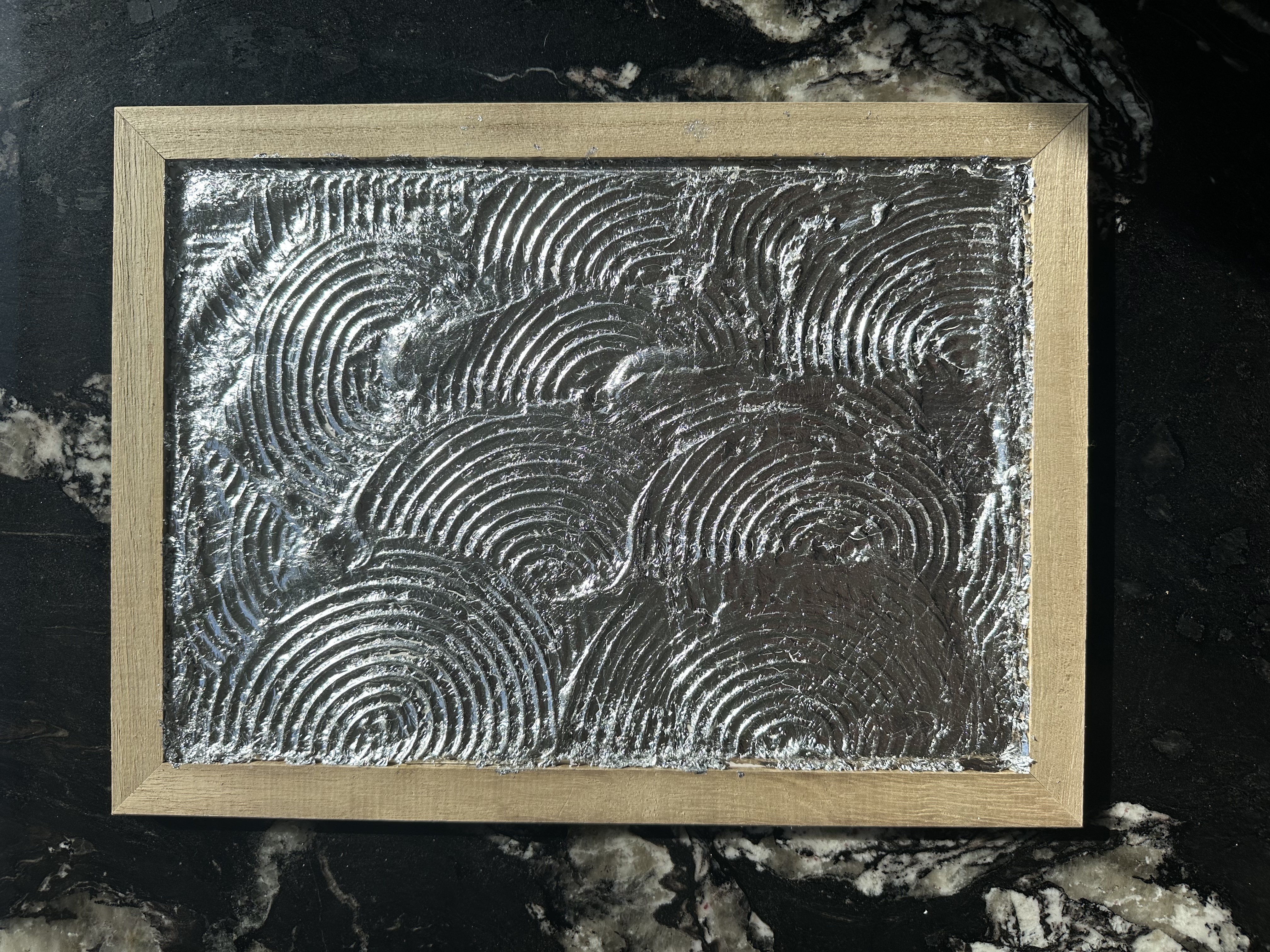 Alive - obra abstracta. Metalizados y masilla texturada, con marco de madera.