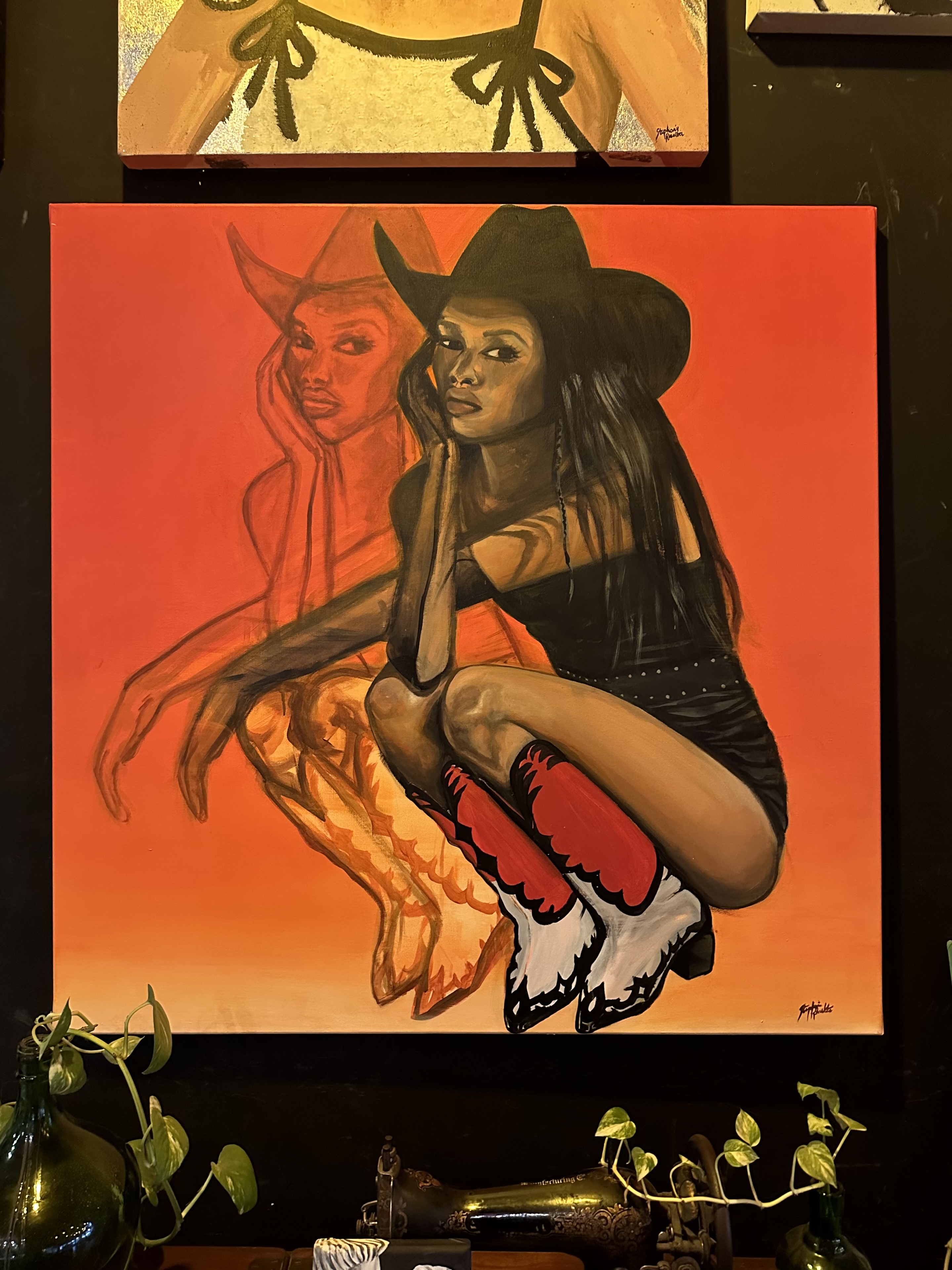 Cowgirl - retrato. Pinturas acrílicas sobre bastidor.